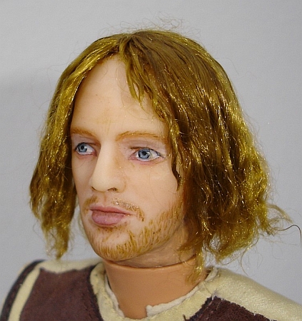 This young man was originally"Elvis Presley" by Mattel. (Ken has a bit shorter legs, but the garb fits him too...) his head I made from FIMO Soft, using a bit "softened" face mold of cheap G.I. Joe clone (probably made in China). Of course, I am no portraitist, but some (little) likeness here might be. The wig I made from an untangled, dyed nylon rope. I have to admit that I never did anything so complicated before; it took me 3/4 year to finish the Faramir doll.