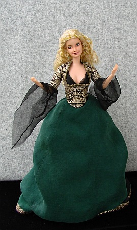 - zelené sukně jsou ušity z tmavě zeleného habotai, prostřední sukně,